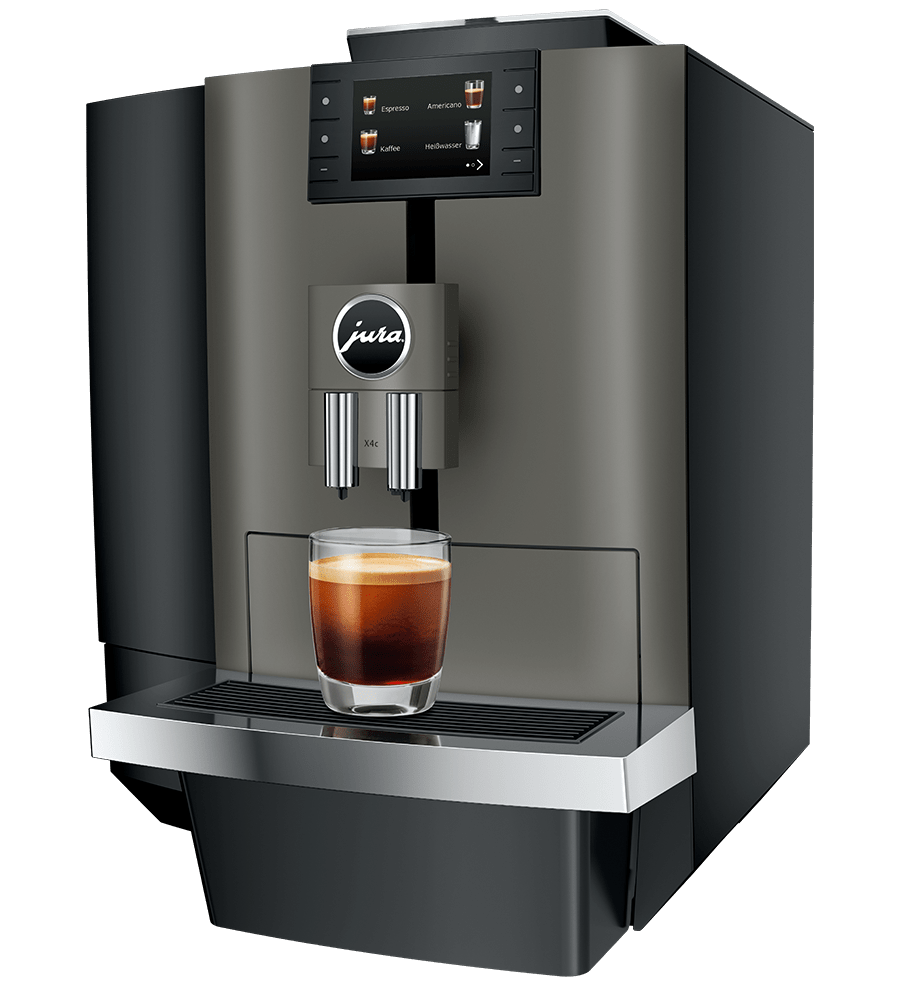 Die X4c bietet unvergleichlichen Kaffeegenuss. Sie mahlt die Kaffeebohnen mit dem Professional Aroma Grinder (P.A.G.2) und vereinigt drei innovative Brühprozesse von JURA. Mit der One-Touch-Lungo-Funktion gelingen Americanos wie Lungos aromatisch und mit charakteristischer Note. Der beliebte Café Crème profitiert von der 3D-Brühtechnologie und der Espresso schmeckt dank des Puls-Extraktionsprozesses (P.E.P.®) kräftig und ausgewogen.